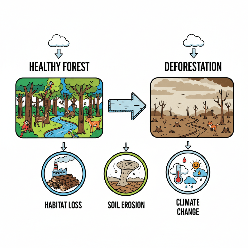 π National Parks and Sanctuariesπ What is Deforestation?π Causes of Deforestationπ Effects of Deforestation