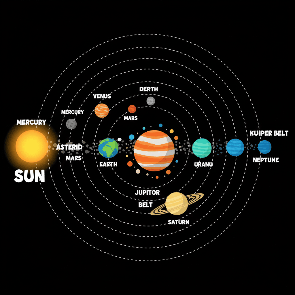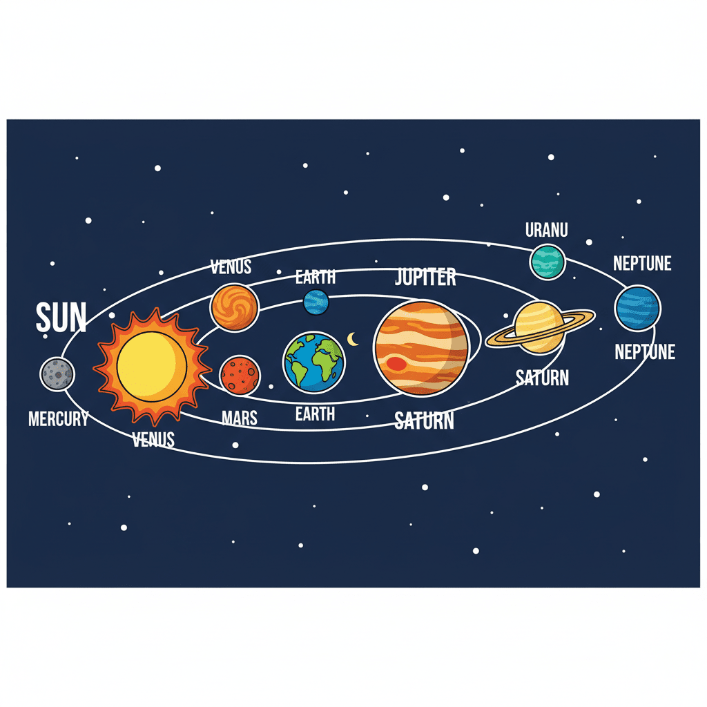 Alright everyone, let's dive into the amazing world of space! Many of you probably already know that our Sun and the eight planets that circle it make up our Solar System. And who can forget our Moon, always circling around our Earth!